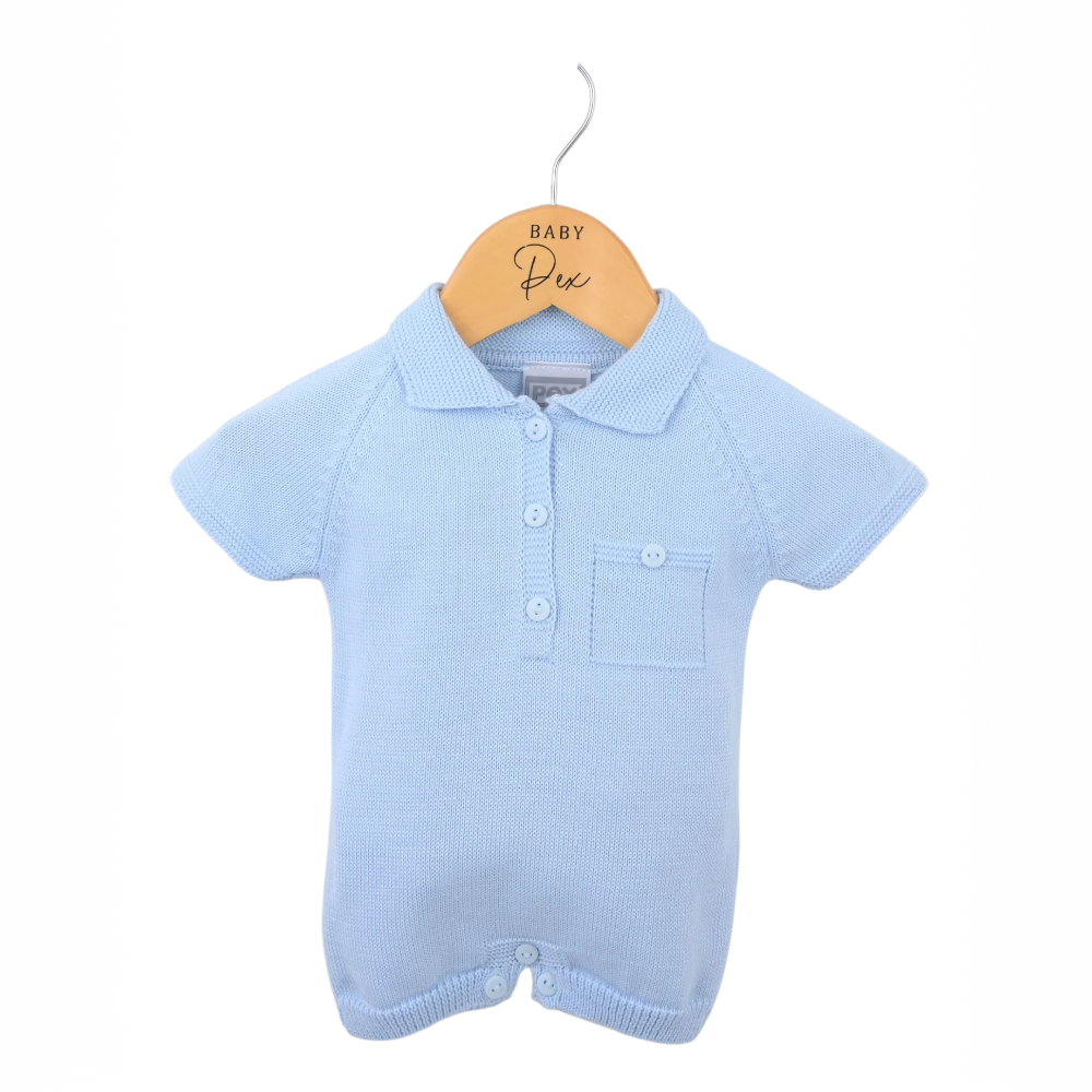 Boys blue fine knit romper.