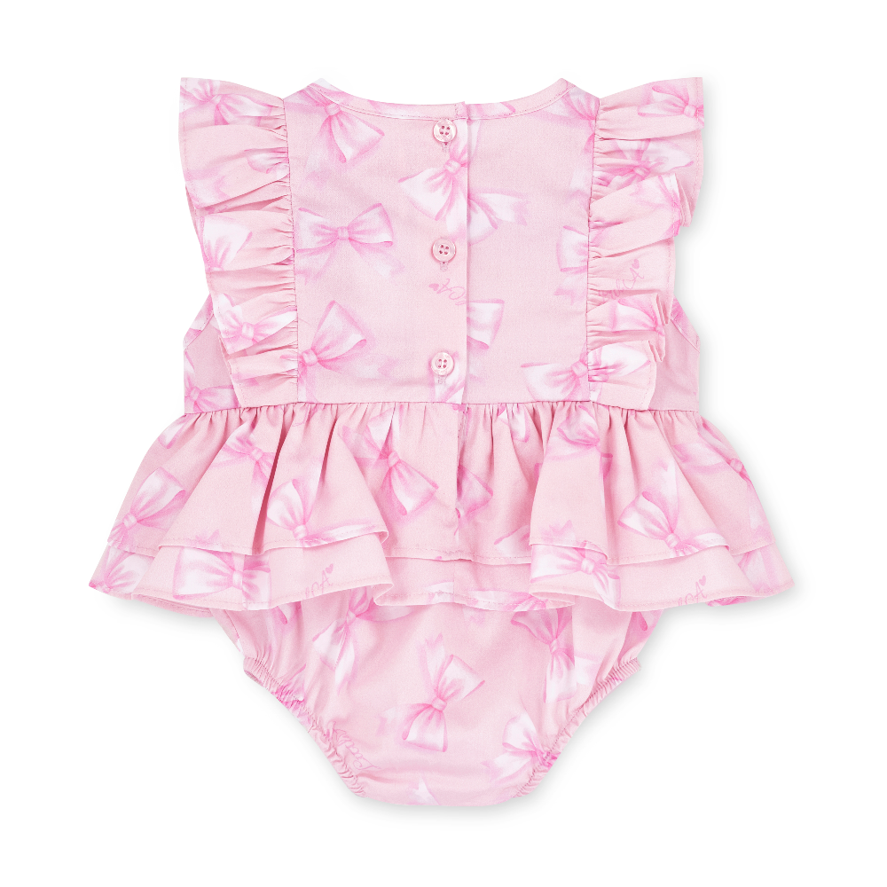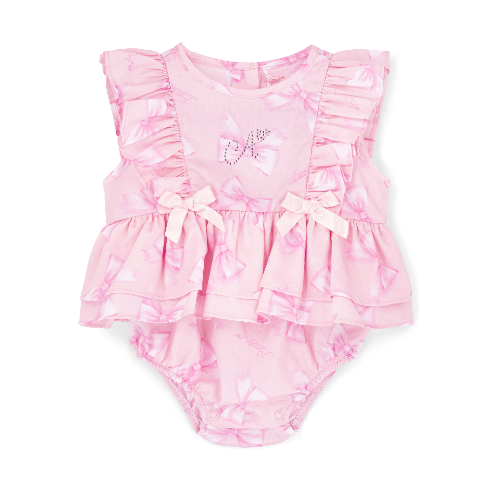 The Odessa romper is made with cute all over bow print poplin, finished with frill and bow details finished with diamante branding.