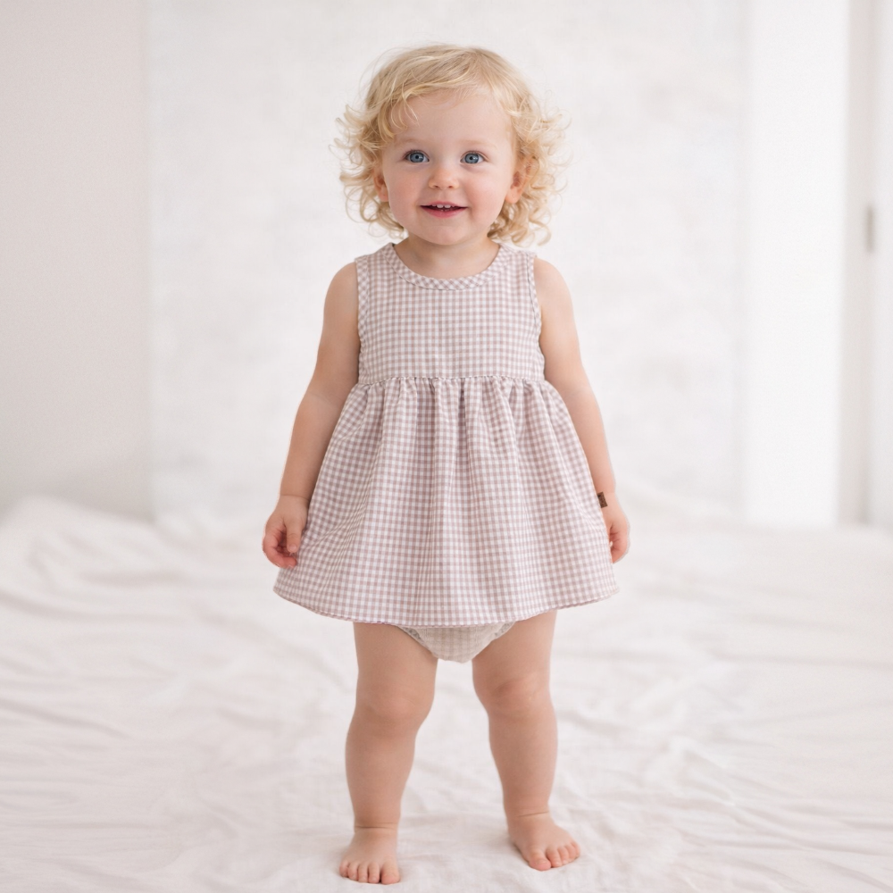 New In Girls Calamaro Beige Check Dress - Pre Order