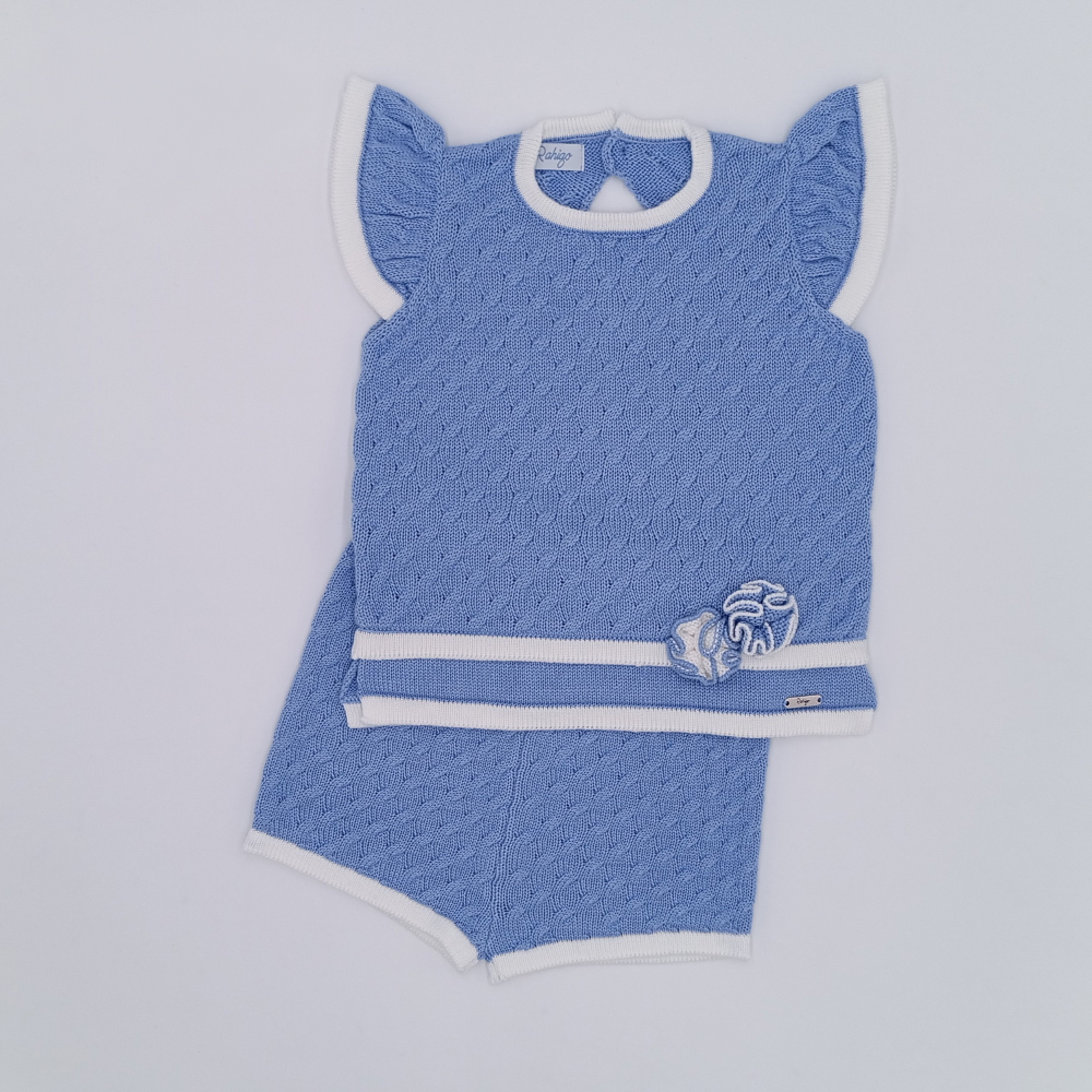 New In gorgeous Rahigo girls sky blue & white shorts set.