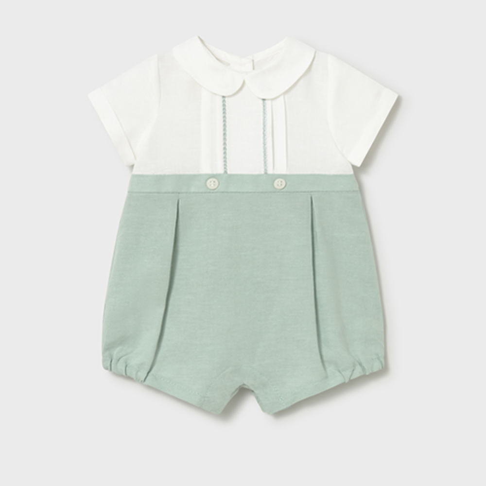 New In Mayoral Boys Green Romper - 0-1 month is backordered and will ship as soon as it is back in stock.