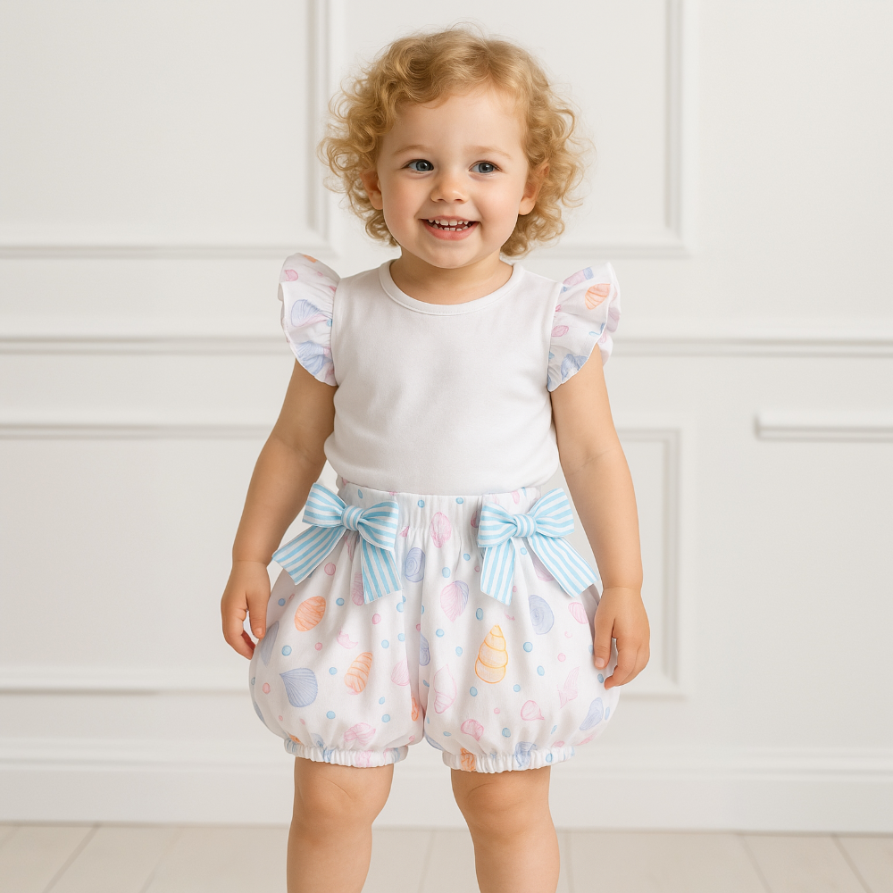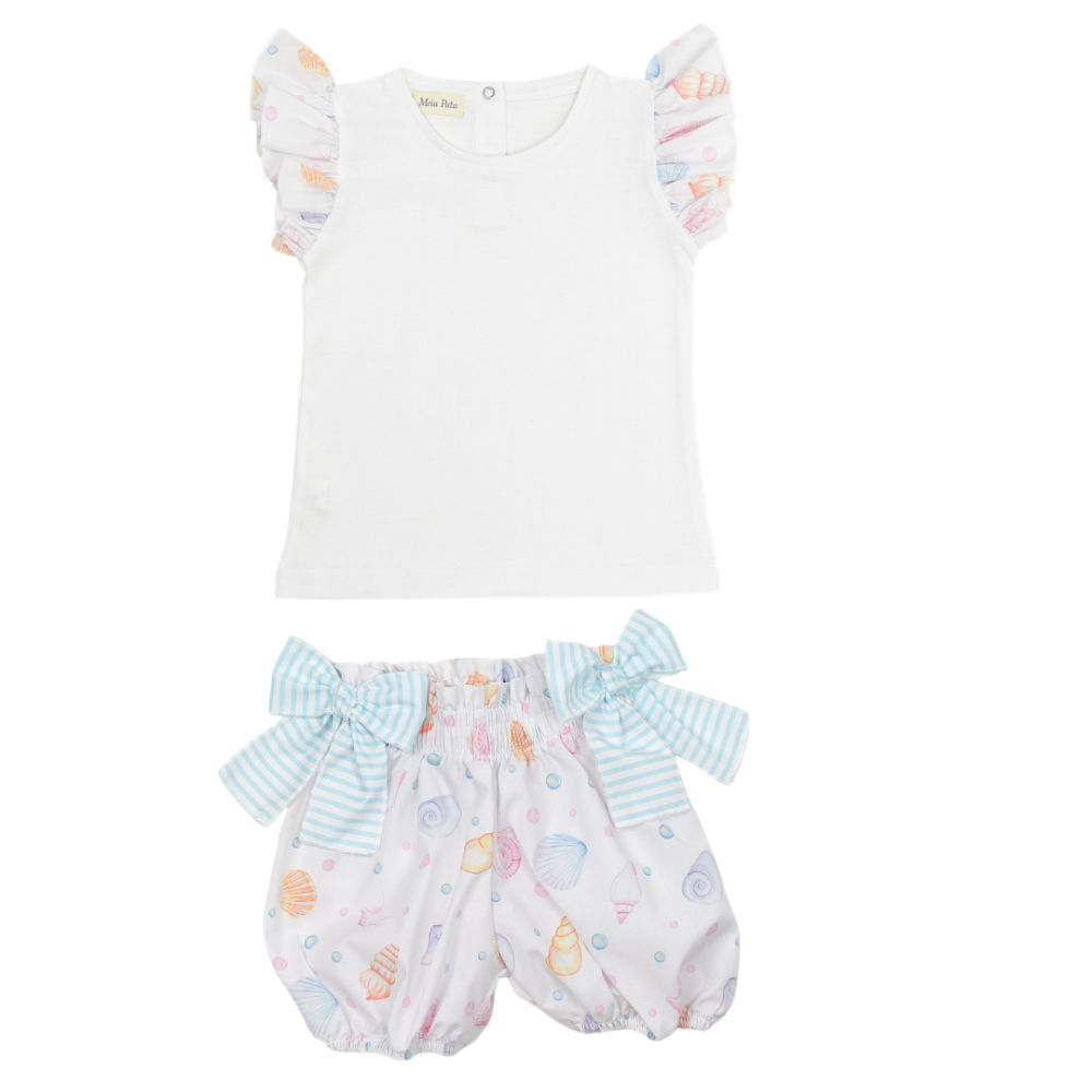 Stunning Girls Meia Pata Seashell bubbly shorts and matching t-shirt.