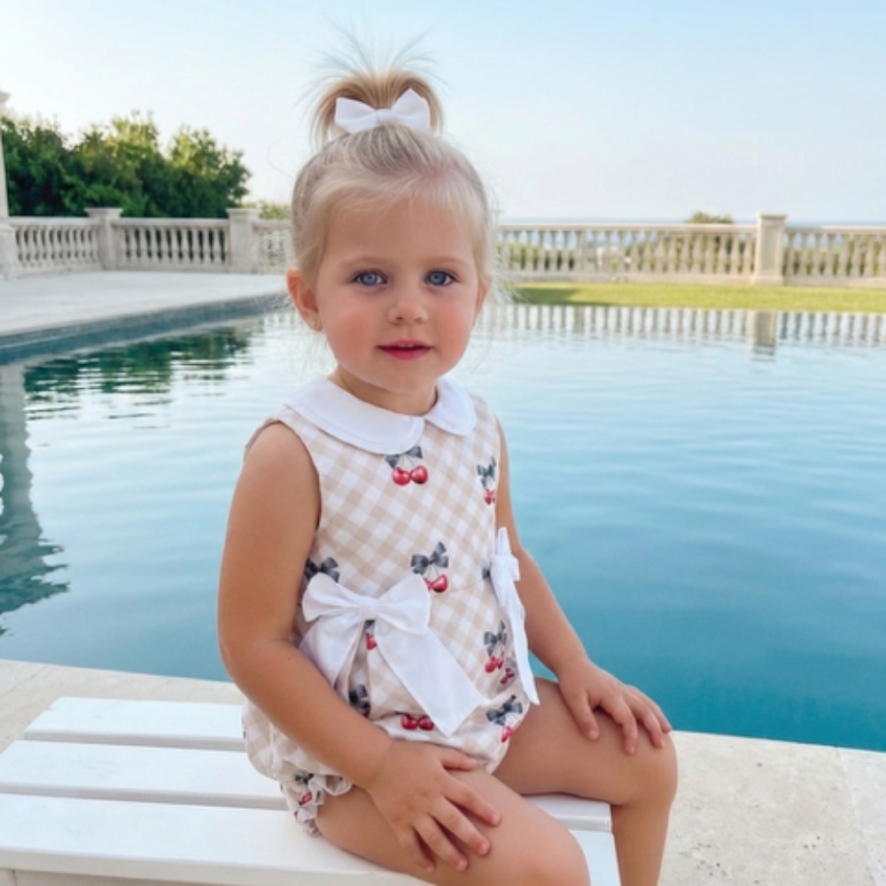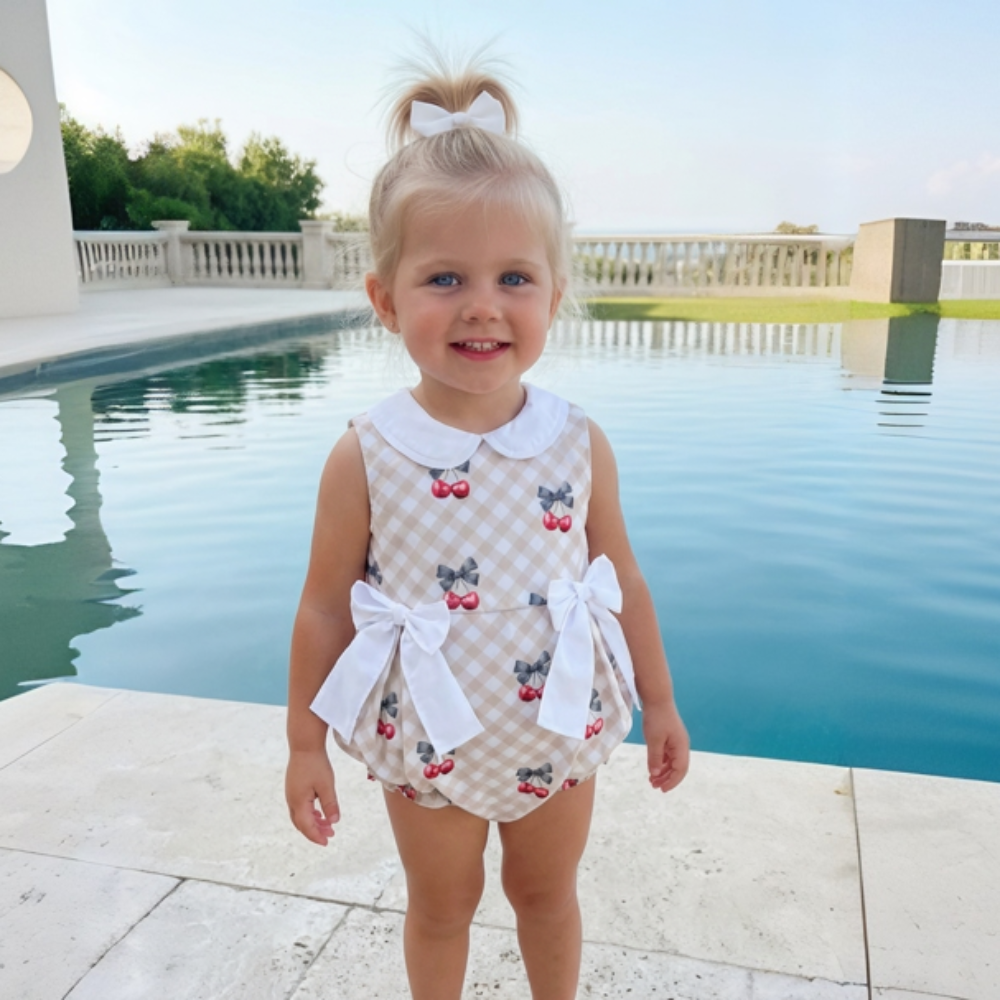 New In Fofettes x Be Chic Cherry Check Romper - Pre Order - 3 month is backordered and will ship as soon as it is back in stock.