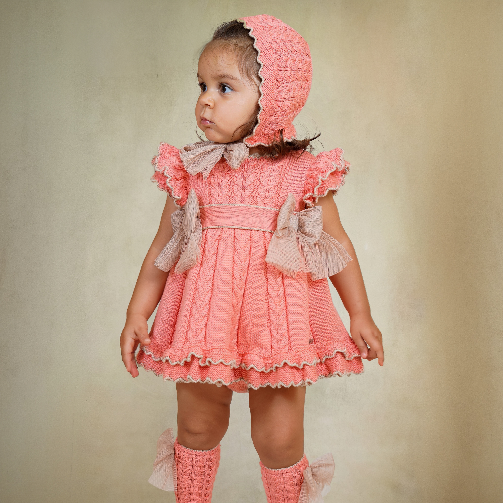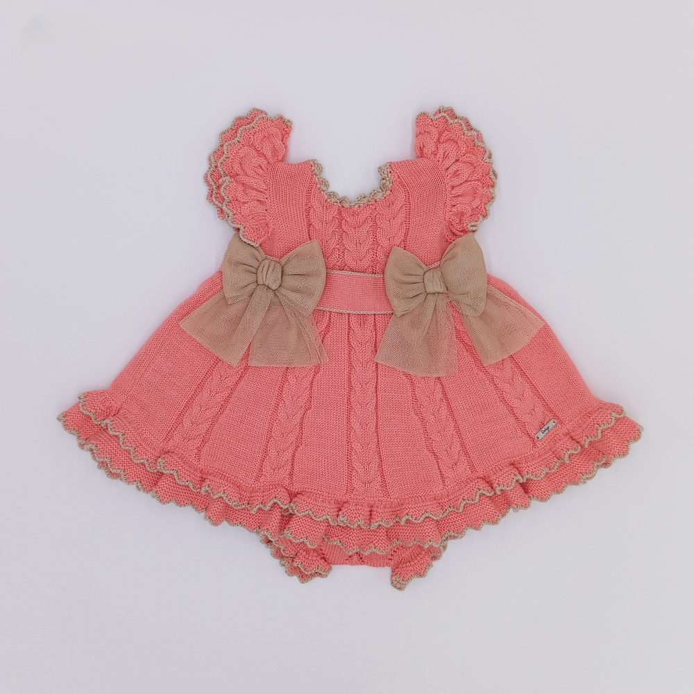 New In gorgeous Rahigo girls salmon and camel baby dress & knickers.