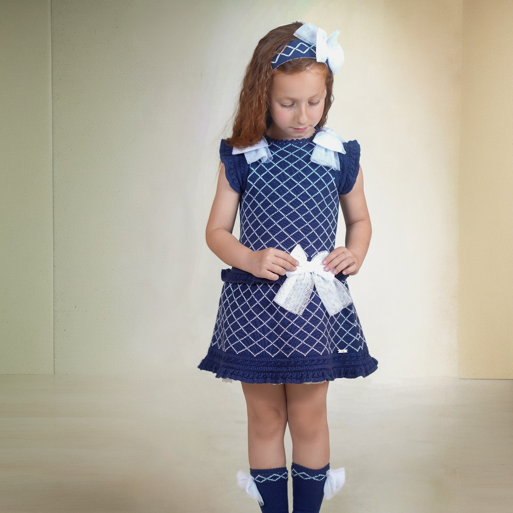 New In gorgeous Rahigo girls navy & white drop waist dress.