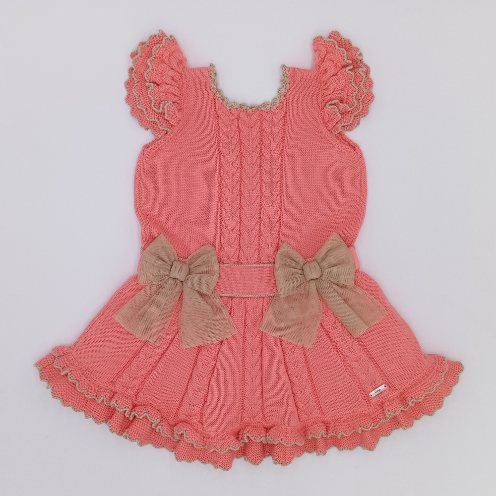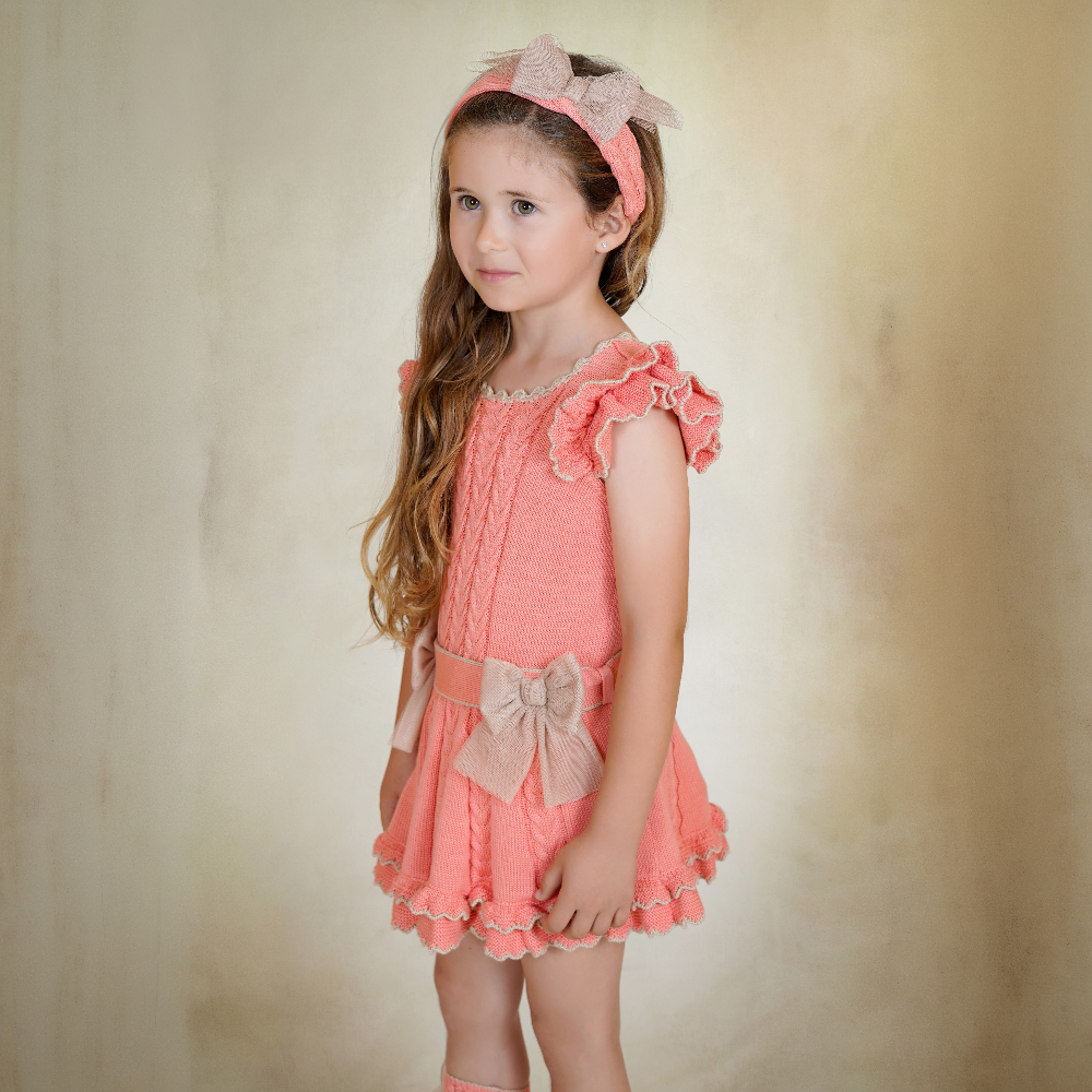 New In Rahigo Girls Salmon & Camel Drop Waist Dress - Pre Order - 2 years is backordered and will ship as soon as it is back in stock.