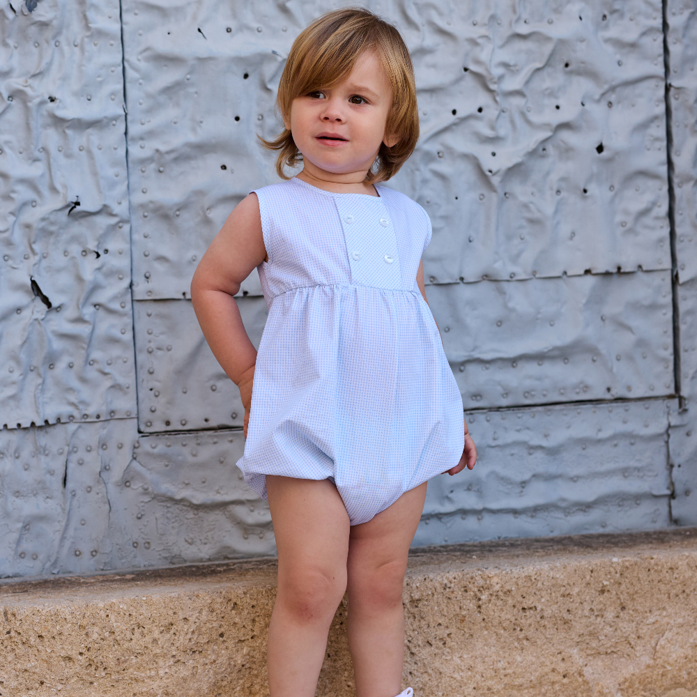 Rapife boys blue Bert check romper.