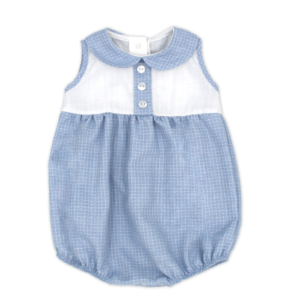Rapife boys blue check romper.