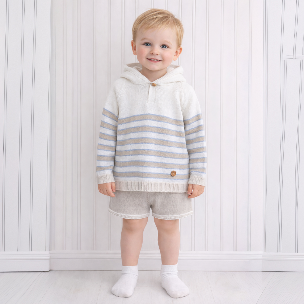 New In Artesania Granlei Boys Sand Knitted Hoody Shorts Set - 6 month is backordered and will ship as soon as it is back in stock.