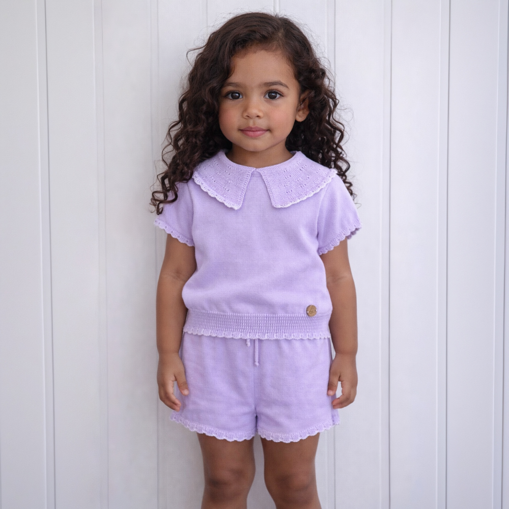 New In Artesania Granlei Lilac Fine Knit Shorts Set