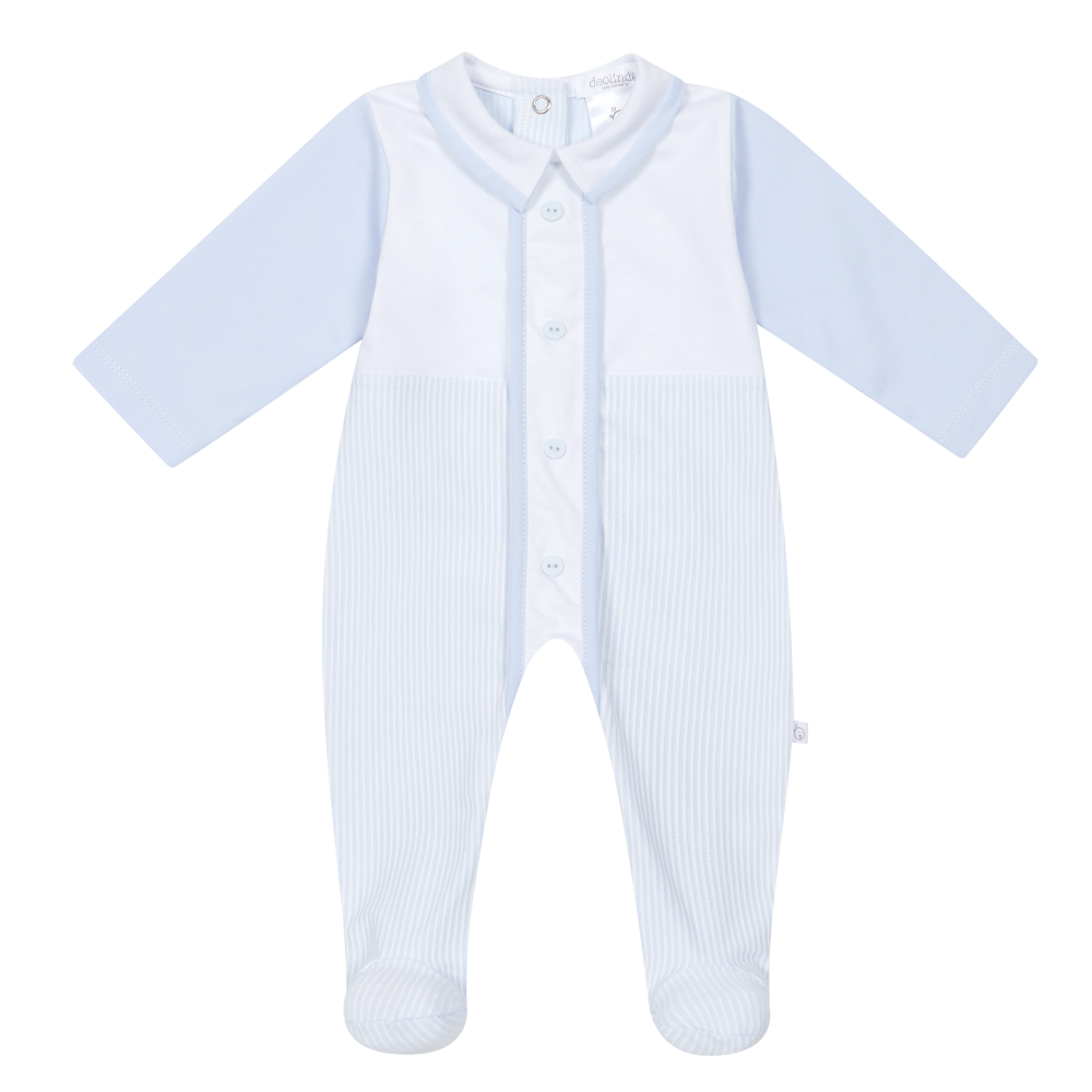 Boys Deolinda striped sleepsuit.