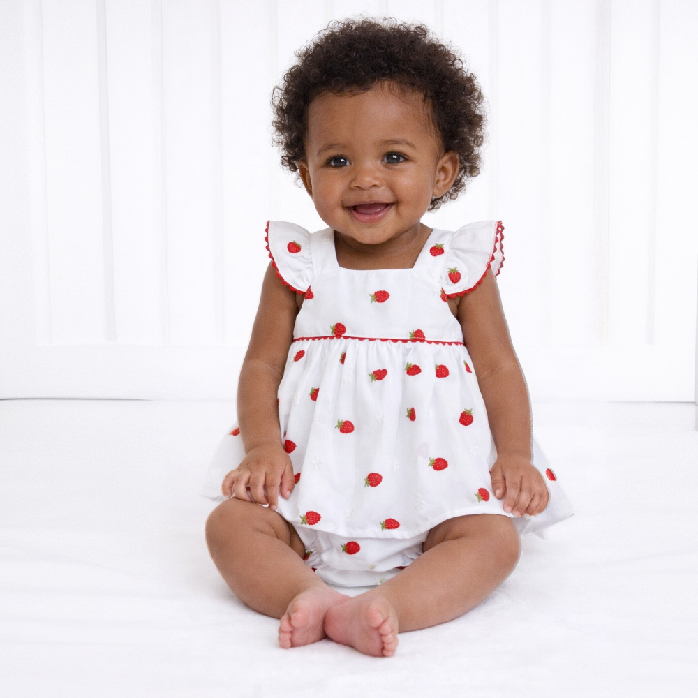 New In Deolinda Girls Strawberry Dress & Bloomers - Pre Order