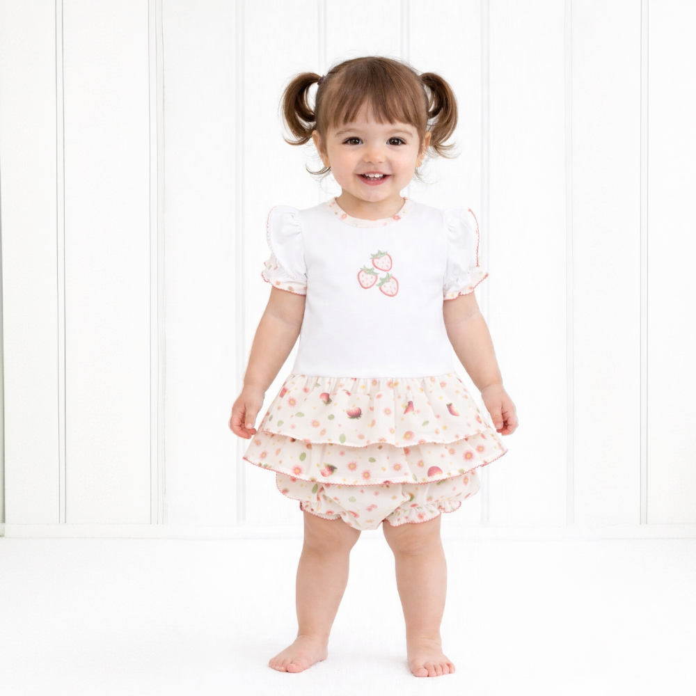 New In Deolinda Girls Tutti Frutti T-shirt & Bloomers - 3 month is backordered and will ship as soon as it is back in stock.