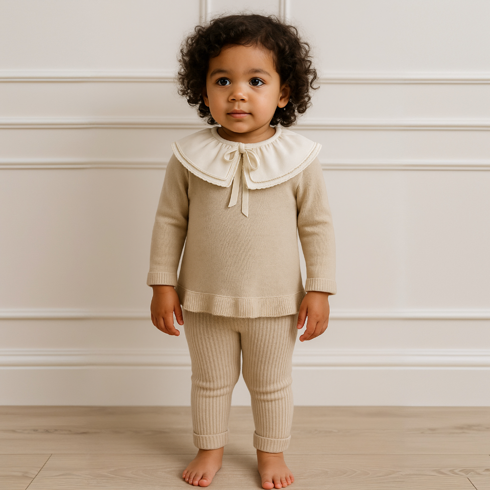 Exclusive to us!! Granlei girls beige knitted tracksuit set.