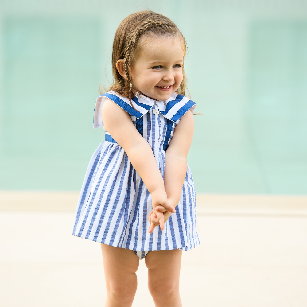 Gorgeous Foque girls blue striped dress.