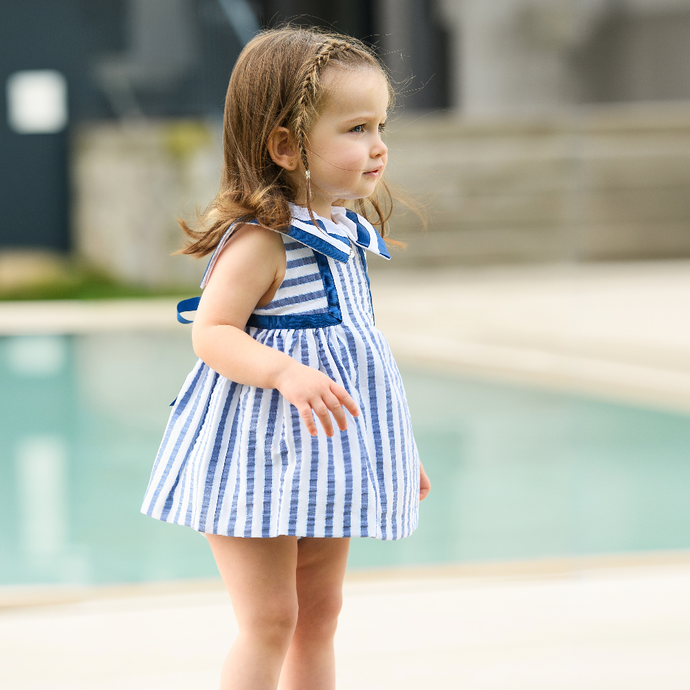New In Foque Girls Navy Baby Dress & Bloomers - Pre Order - 3 month is backordered and will ship as soon as it is back in stock.