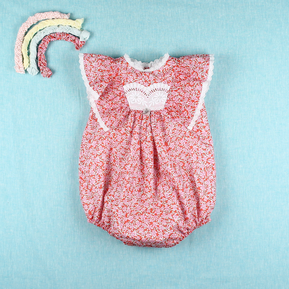 New In Foque Girls Red Ditsy Romper - Pre Order - 3 month is backordered and will ship as soon as it is back in stock.