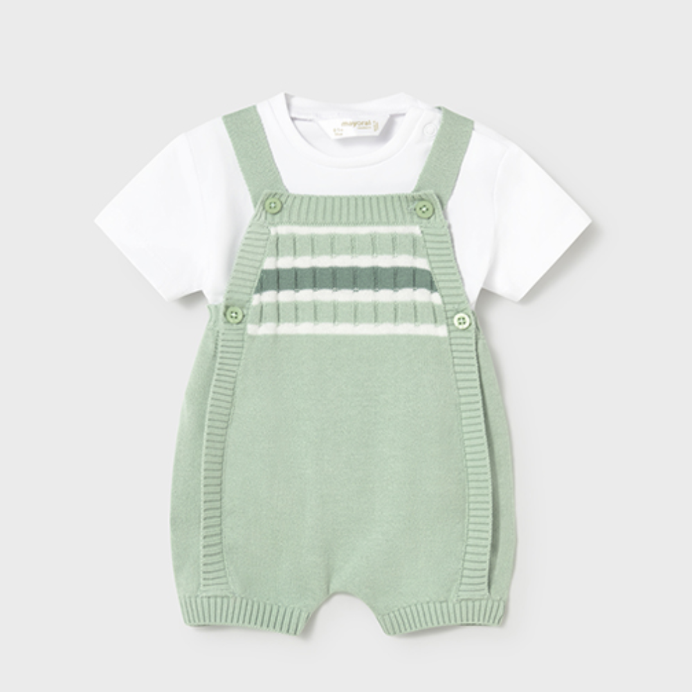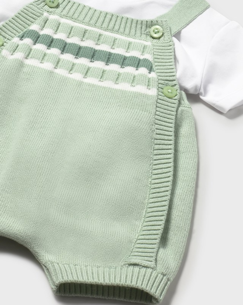 New In Mayoral Boys Green Knitted Dungaree Short Set - 0-1 month is backordered and will ship as soon as it is back in stock.