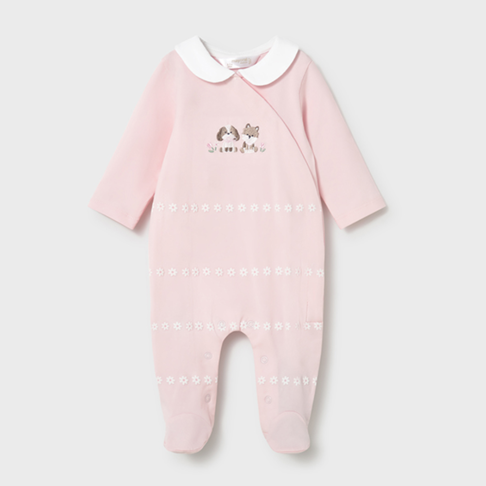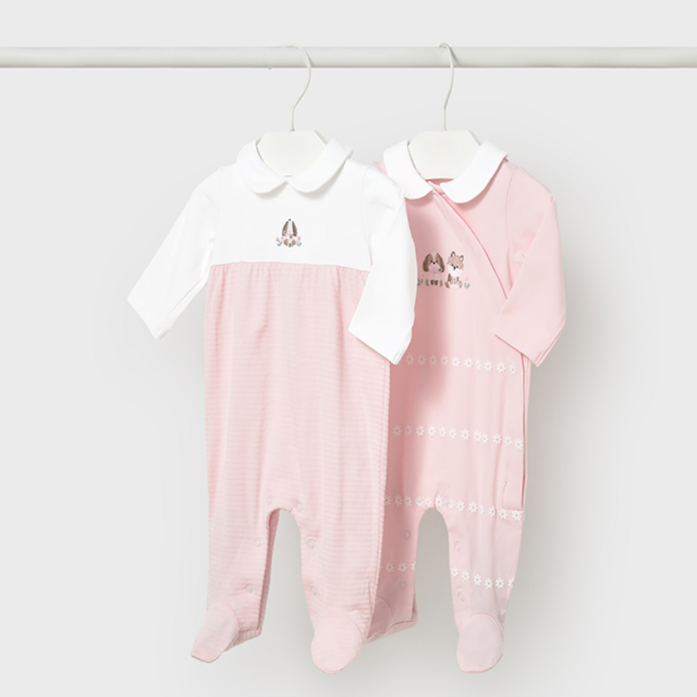 New In Mayoral Girls Pink Twin Set Sleepsuits - 0-1 month is backordered and will ship as soon as it is back in stock.