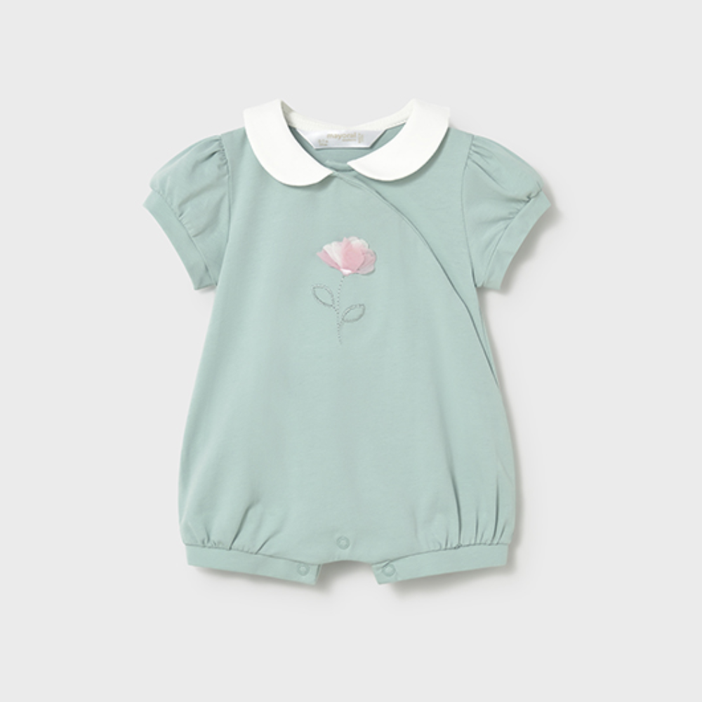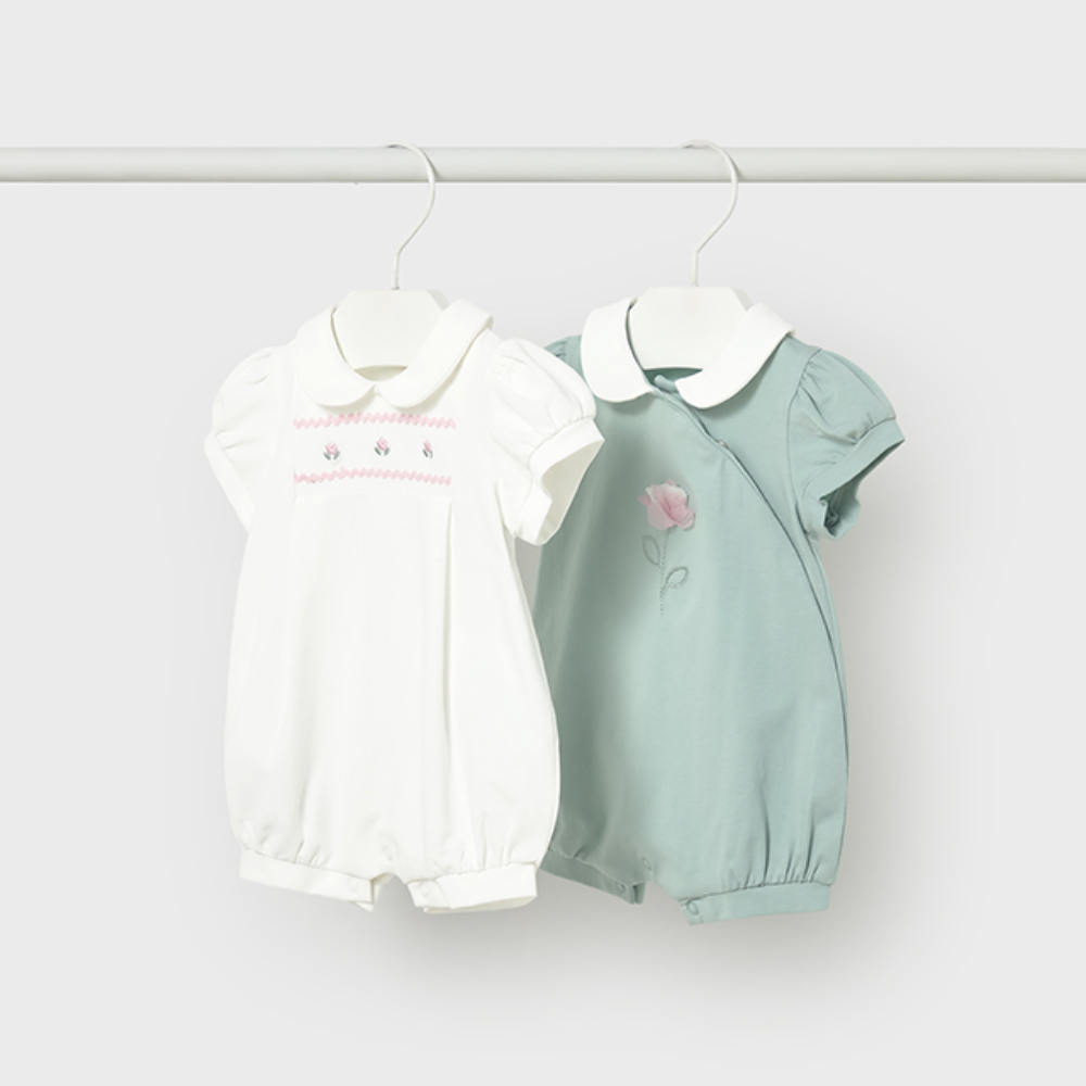Sage green romper with flower to the front.One with daisies one with stripes.