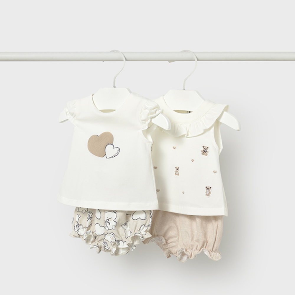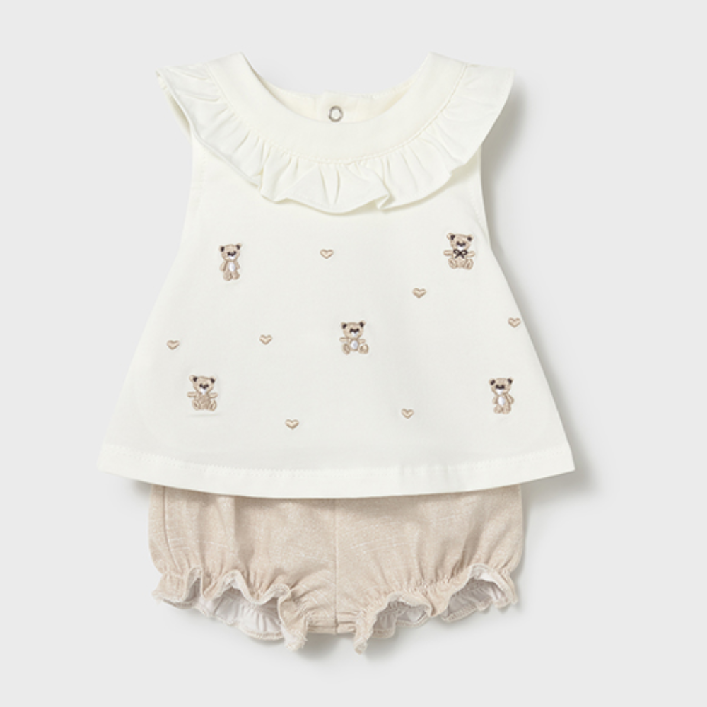 New In Mayoral Girls Wheat Jam Pant Set - 0-1 month is backordered and will ship as soon as it is back in stock.