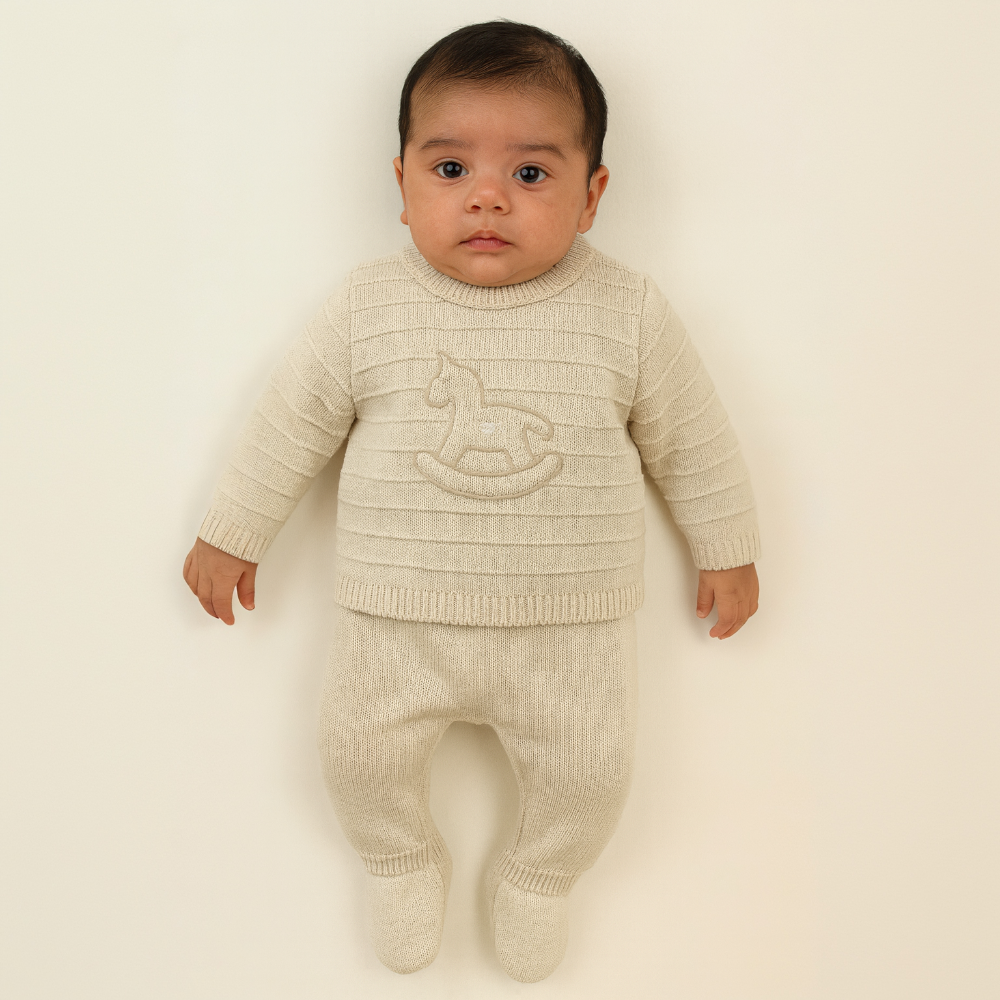 New In Pex Boys Beige Rocking Horse Knitted Set